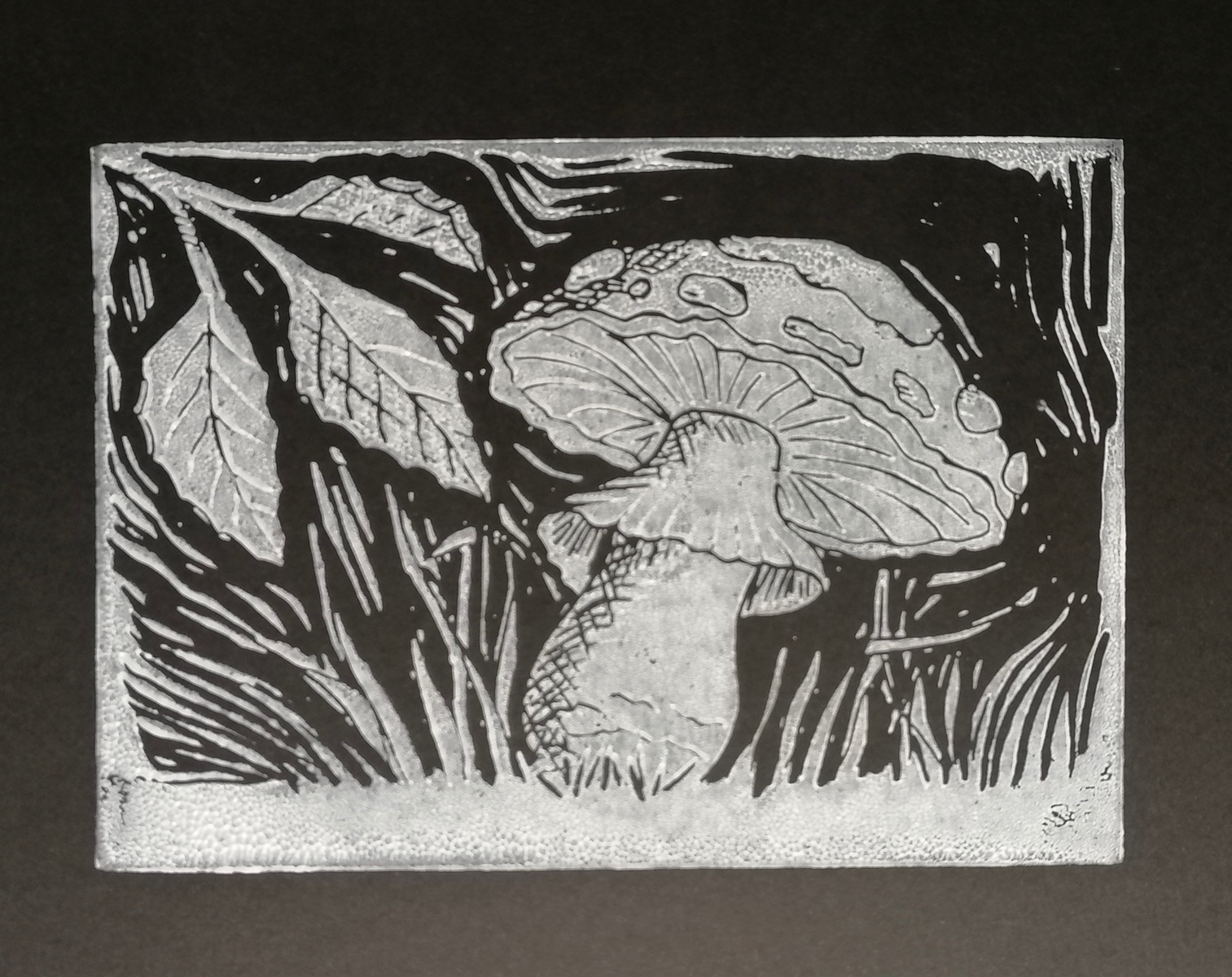 Bin mal wieder pilzlich- und unpilzlich-kreativ unterwegs. Diesmal mit Linolschnitt bzw. Softplatten-Schnitt.