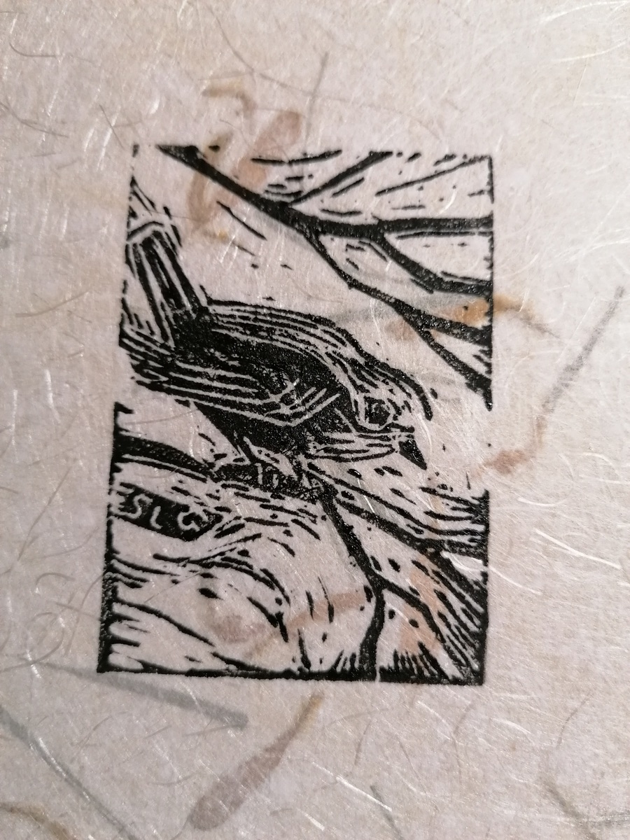 • Du schnitzt das Bild ins Linol (Linoleum, das Zeug was man auch als Bodenbelag nimmt?) und färbst es dann und druckst es auf Papier, seh ich das richtig? So bisl wie man Kartoffeln als Kind geschnitzt hat und damit gestempelt?