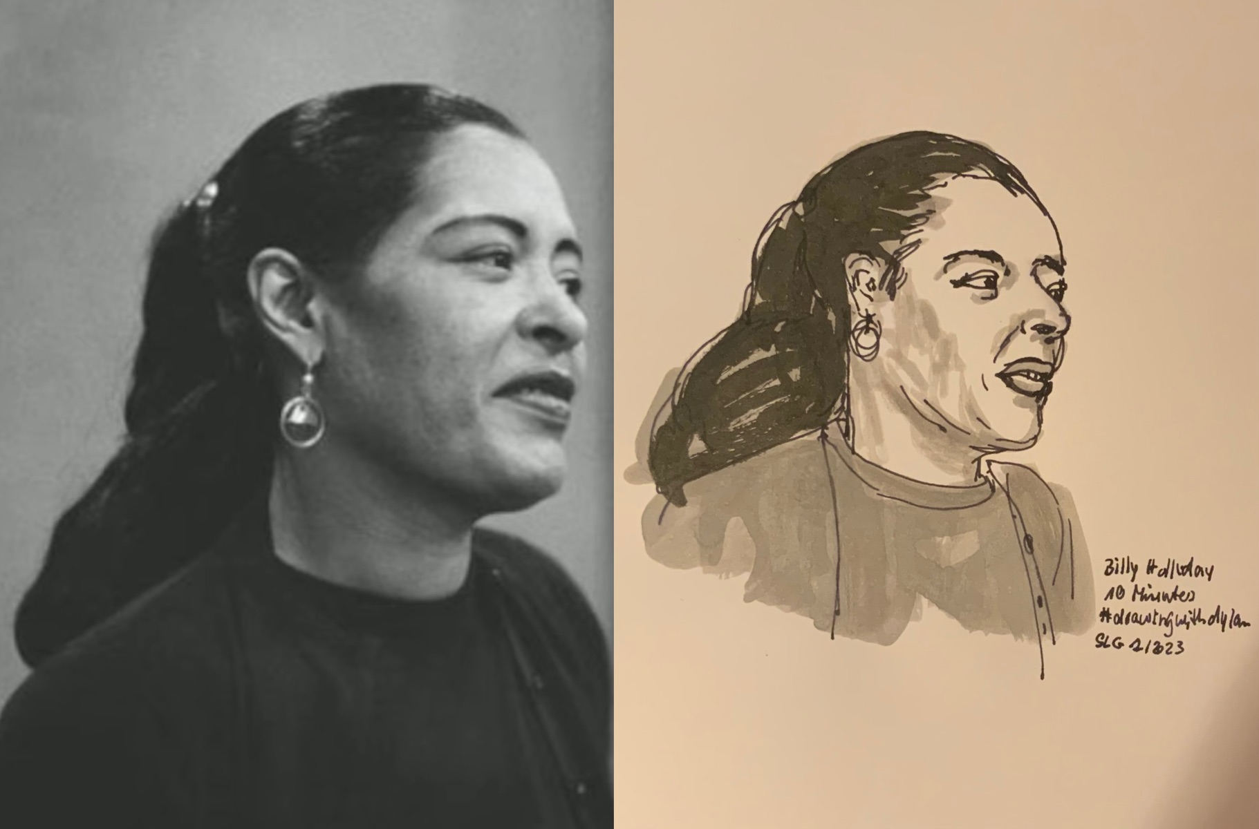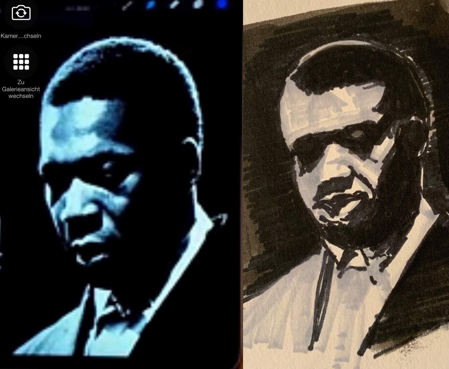 hier mal wieder völlig unpilzlich, aus zwei Sessions #drawingwithdylan - Jazzgrößen. Absolut raus aus meiner Komfortzone, Bilder mit Zeitlimit zeichnen, in schwarzweiß, Portrait aaahhh!