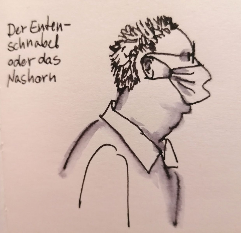 ...Was das Malen in der Reha betrifft: sie haben mich ja vor drei Wochen schon entlassen... Und auch wenn ich es liebevoll die "Anstalt" nannte, mussten wir eine weiße Jacke nur in Form einer FFP2-Maske tragen, die Hände durften wir frei bewegen