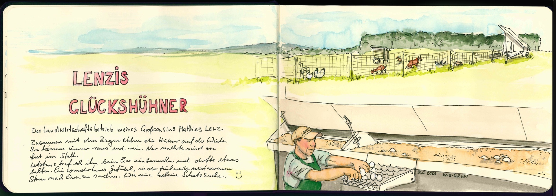 Und jetzt hole ich Eier von einem Namensvetter, wenige Kilometer weg von mir. Und dort dürfen die Hühner, wie von Dir beschrieben, mit allen möglichen anderem Getier, frei laufen.