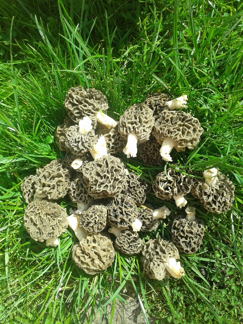 Ich hatte eigentlich die Hoffnung auf Morcheln so ziemlich aufgegeben, und dann das: Eine etwas feuchtere Wiese im nordöstlichen Barnim, leichte Hanglage, Gräser, Klee, Löwenzahn. Ich war auf der Suche nach Oregano, der dort früher mal wuchs, und hatte nicht mal im Traum an Pilze gedacht, als mir eine Speisemorchel ins Blickfeld sprang.