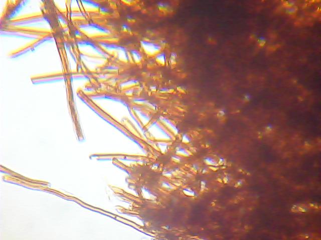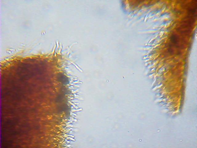 Mikroskopisch sind keinerlei Phellinus - Seten zu finden, nur cystidenähnliche, hyaline Hyphenenden im Hymenium: