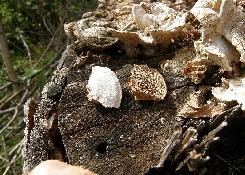 Und irgendwie ist dir noch eine Striegelige Tramete mit reingerutscht, die ja auch an dem Stumpf wuchs, kann das sein? ;)