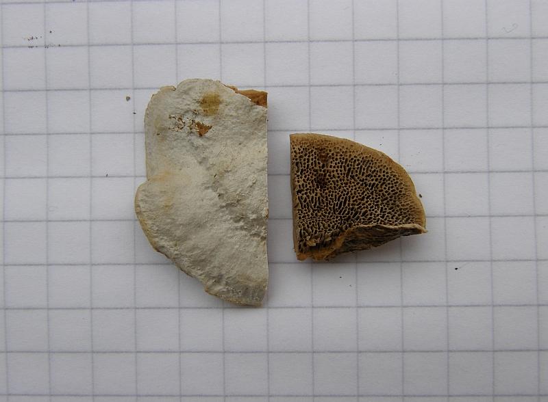 Ansonsten passt für mich das Gesamtbild nicht so richtig (Größe, Fleischbeschaffenheit, Wuchsweise (vor allem als Hütchen an der Seite vom Stumpf). Und das Fleisch ist zu dunkel.