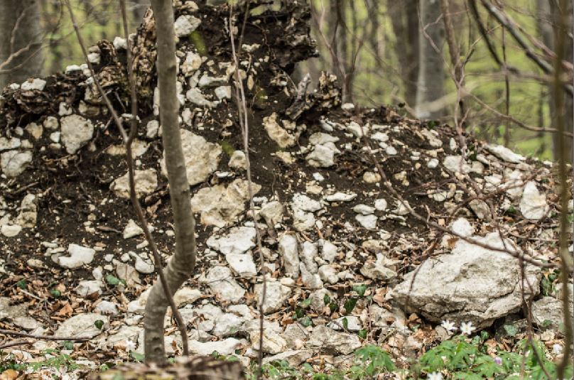 Der Boden ist hier extrem kalkhaltig, was die Unterseite, also wurzelseitig, von einem wetterbedingt gekippten Baum dokumentiert.