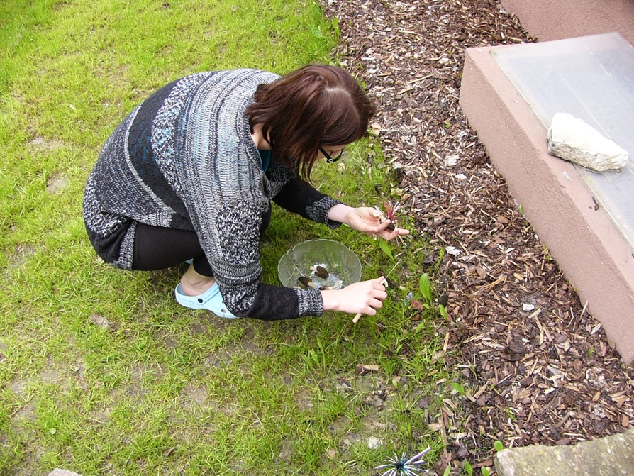 Einige kleinere Exemplare wurden stehengelassen, da nochmal Regen angesagt war. Die sollen dann getrocknet werden und heute wurden wieder einige größere davon geerntet. Aber was man innen so alles findet ... Schnecken, Kellerasseln und ... seht selbst: