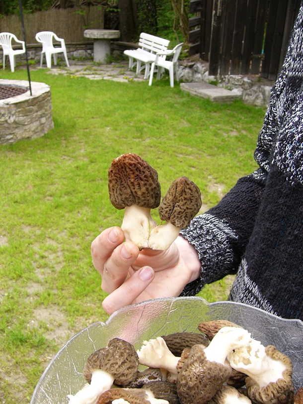 Anfang letzter Woche mussten dann die ersten größeren Exemplare dran glauben und wurde zum Trocknen abgeerntet (davon gibt es keine Bilder). Und am Sonntag den 27.04. schließlich, wurde der Hauptteil abgeerntet und frisch zubereitet (es gab leckeres Steak mit Morchel-Rahmsauce und zwar mit etwas Cognac verfeinert).