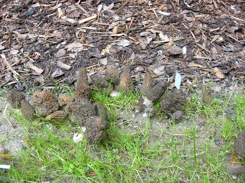 John Wright hat dazu geschrieben daß die Morcheln nur ihre Energie aus dem neueren Substrat ziehen, nicht aber dort direkt wachsen. Meist stehen sie eben irgendwo daneben oder kommen auch unterhalb der neuen Schicht aus dem alten Mulch durchgebrochen.