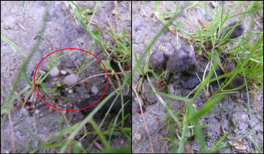 Einige kleinere Exemplare wurden stehengelassen, da nochmal Regen angesagt war. Die sollen dann getrocknet werden und heute wurden wieder einige größere davon geerntet. Aber was man innen so alles findet ... Schnecken, Kellerasseln und ... seht selbst: