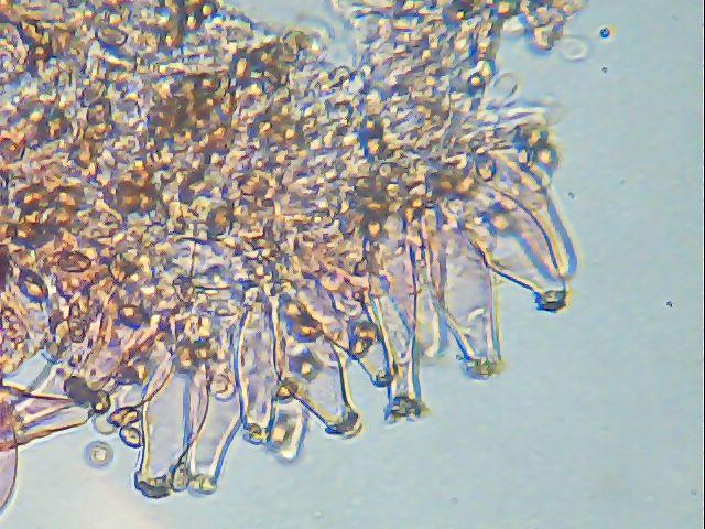 Mikroskopische Eigenschaften : Sporen 8,5-9,5 X 5-6,5 , elliptisch , ohne Höcker. Stiel mit vielen Zystiden , teils kristallbeschopft. Schnallen vorhanden. Lamellenschneide mit kristallbeschopften Zystiden.