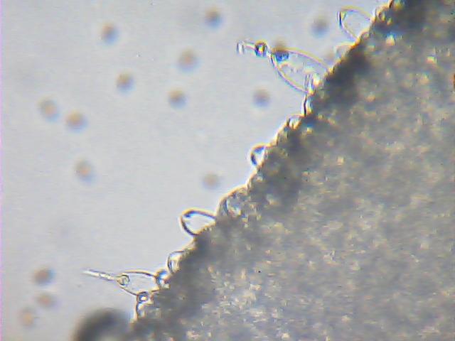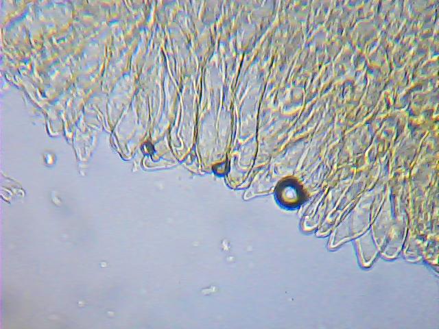 Bislang habe ich drei Lamellenschneiden komplett abgesucht, da war definitiv nichts, was mich an eine Zystide erinnert hätte.
