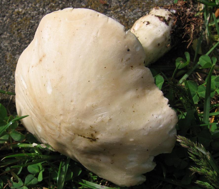 Hut: ca 8cm, creme mit ockerbräunlichen Flecken, Rand eingerollt, fleischig.