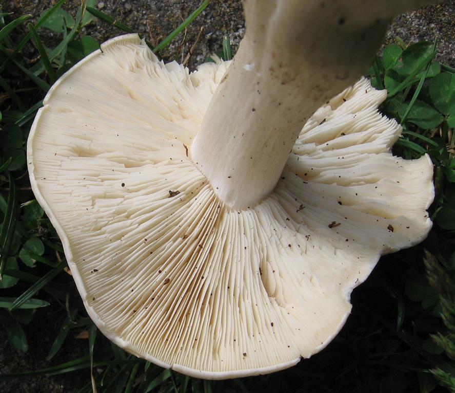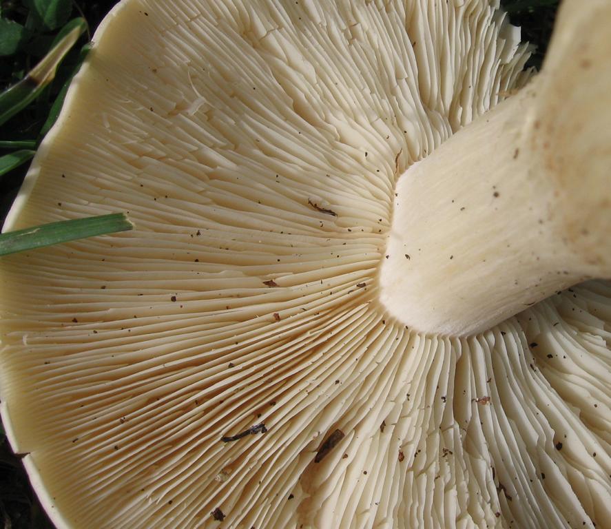 Lamellen: eng, beige, viele Zwischenlamellen, am Stiel kl. Burggraben mit Zähnchen herablaufend.