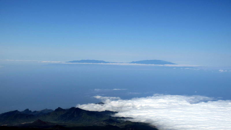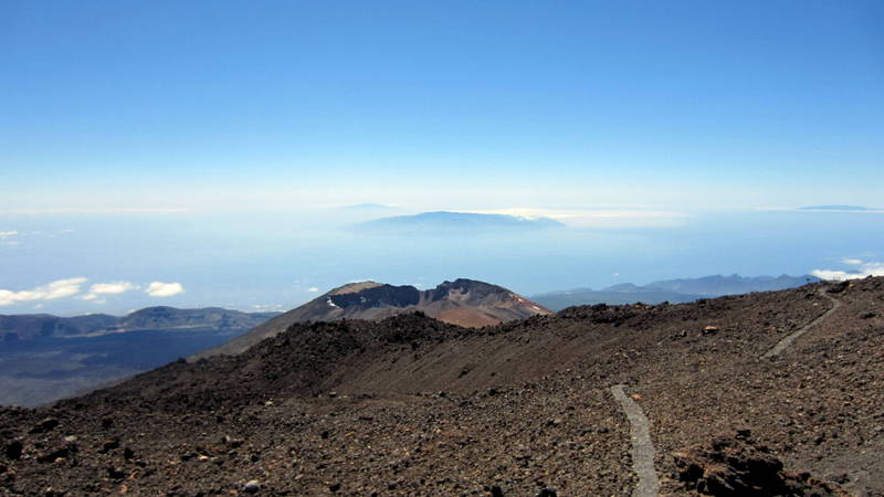 8 Krater von Pico Viejo und im Hintergrund - die Inseln La Gomera und El Hierro.