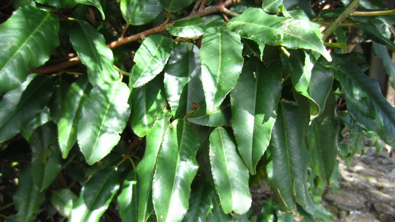 Japanische Wollmispel (Eriobotrya japonica) passt! Habe die Früchte probiert - sie sahen genau so aus, die Blätter auch.