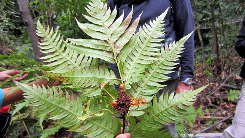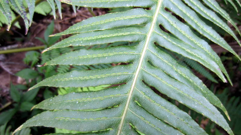 Riesige Farne säumten den Weg. Wenn ich mich richtig daran erinnere, hier müsste der Wurzelnde Kettenfarn (Woodwardia radicans) sein.