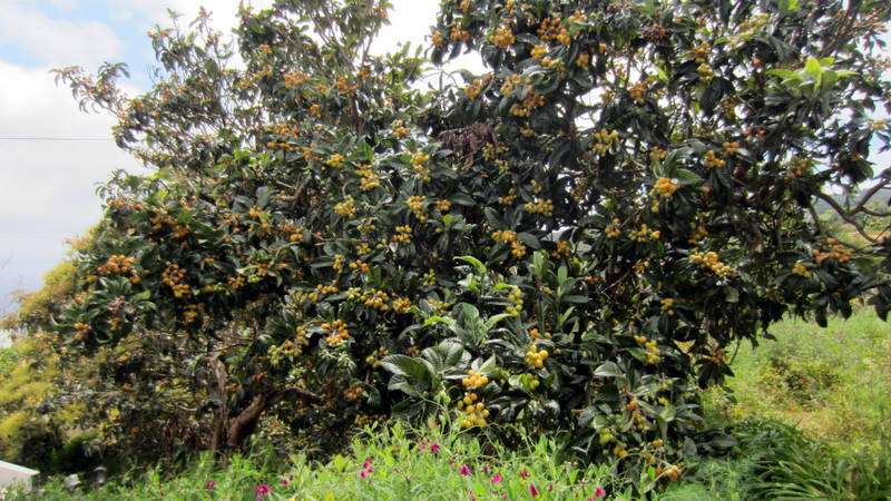 109, Obstbaum, Mispel: sieht aus wie die japanische Wollmispel, Eriobotrya japonica (Rosaceae) (oft angepflanzt, auch in Spanien)