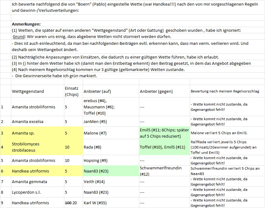 - Wenn also nach einer "B. edulis"-Wette z.B. auf "Russula sp. (neuer Wettgegenstand)" geboten wird ---> handelt es sich um eine völlig andere, neue Wette, die nur ausgefochten werden kann, wenn gegen "Russula sp."und nix anderes gewettet wird.