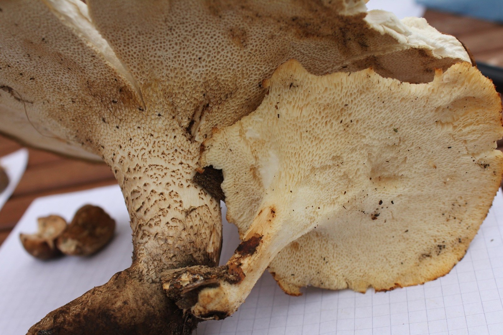 Pablo hatte mich gebeten, ein paar Fotos und Stichpunkte zur Frage der Unterscheidung von Schuppigem Porling und Sklerotienstielporling einzustellen: