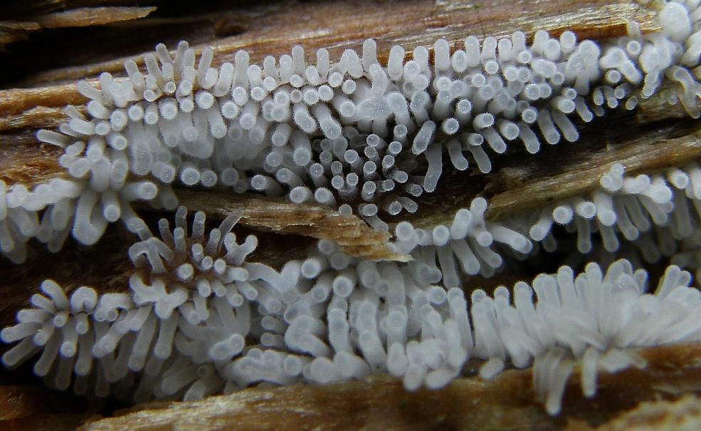 Optisch sind beide Varietäten ja recht gut auseinanderzuhalten, aber eben jede für sich auch sehr variabel.01 Ceratiomyxa fruticulosa var. fruticulosa, wohl noch nicht ganz reif: