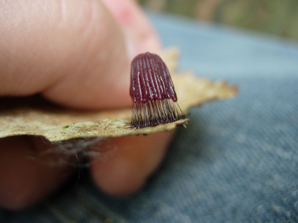 02 geht man ganz nah ran, erscheinen die jungen Fruchtkörper grob bereift: