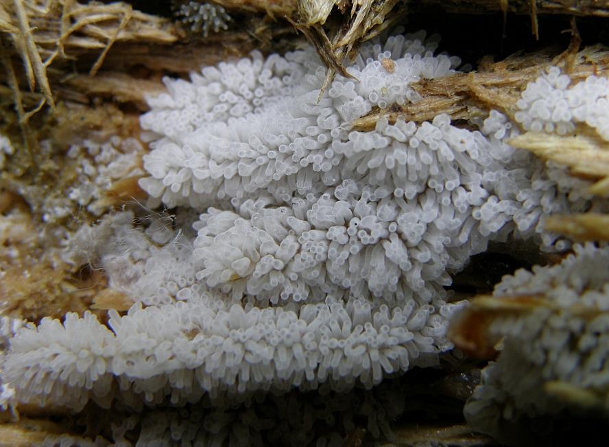 Optisch sind beide Varietäten ja recht gut auseinanderzuhalten, aber eben jede für sich auch sehr variabel.01 Ceratiomyxa fruticulosa var. fruticulosa, wohl noch nicht ganz reif: