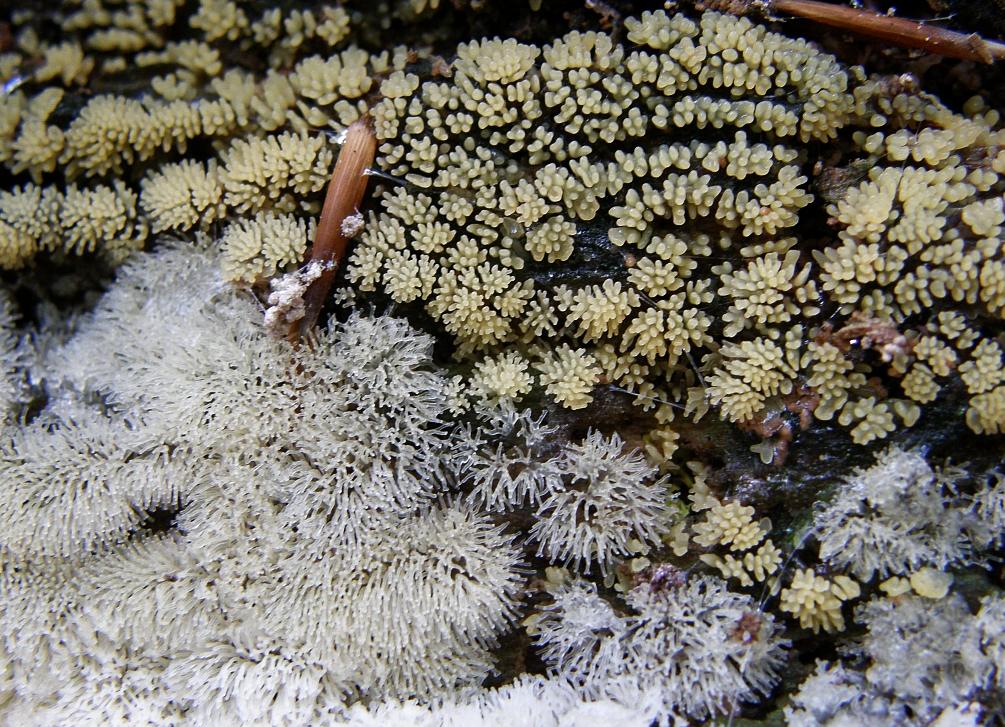Aber daß die var. fruticulosa selten in gelb auftritt ist doch richtig, oder?Nach meiner Erfahrung stimmt das. Allerdings hab ich die var. poroides noch nie in gelb gesehen, die var. fruticulosa dagegen schon, aber auch nur einmal, da dann gleich über 10cm ² an einem liegenden Buchenstamm.