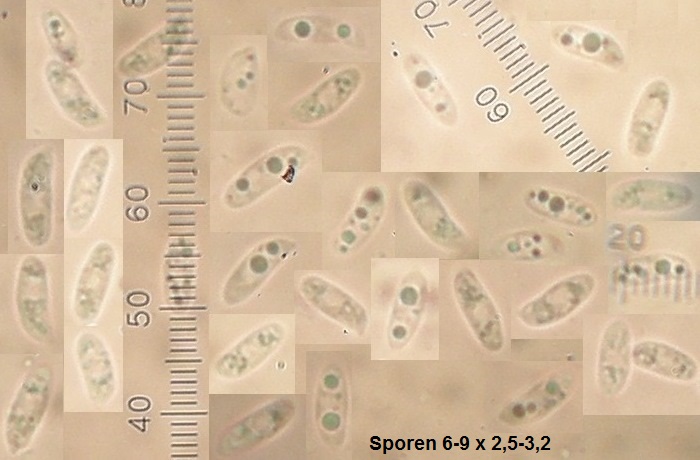 Sporenpulver: weiß; Sporen überwiegend zylindrisch, 6,5-9 x 2,2-3 µm (eigene Messungen)