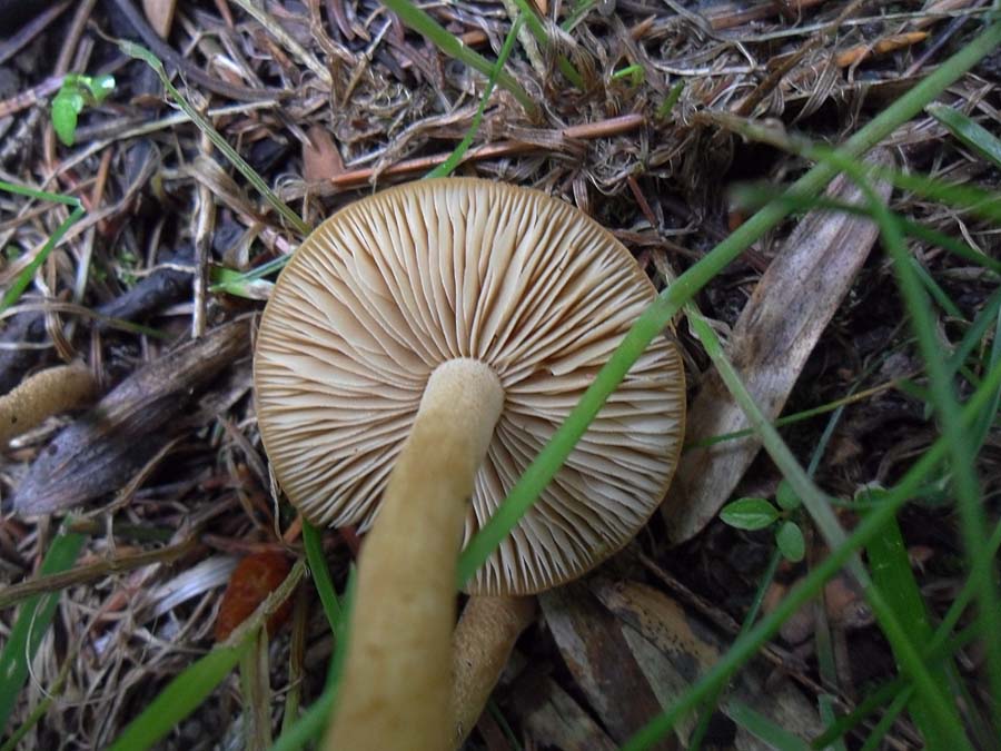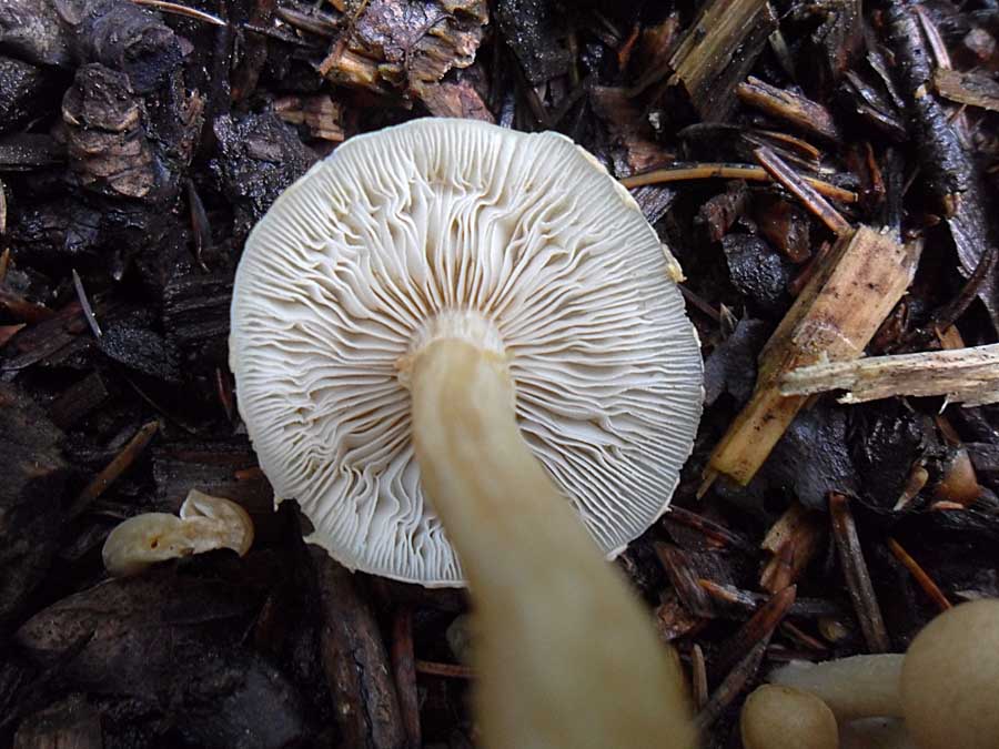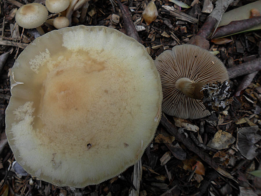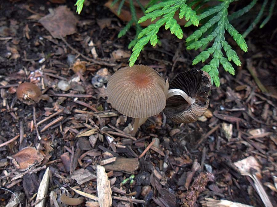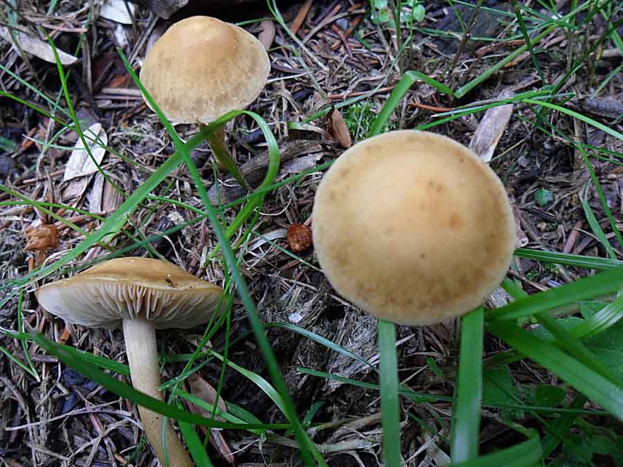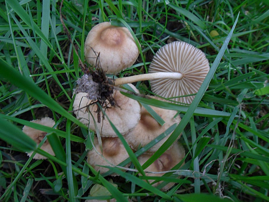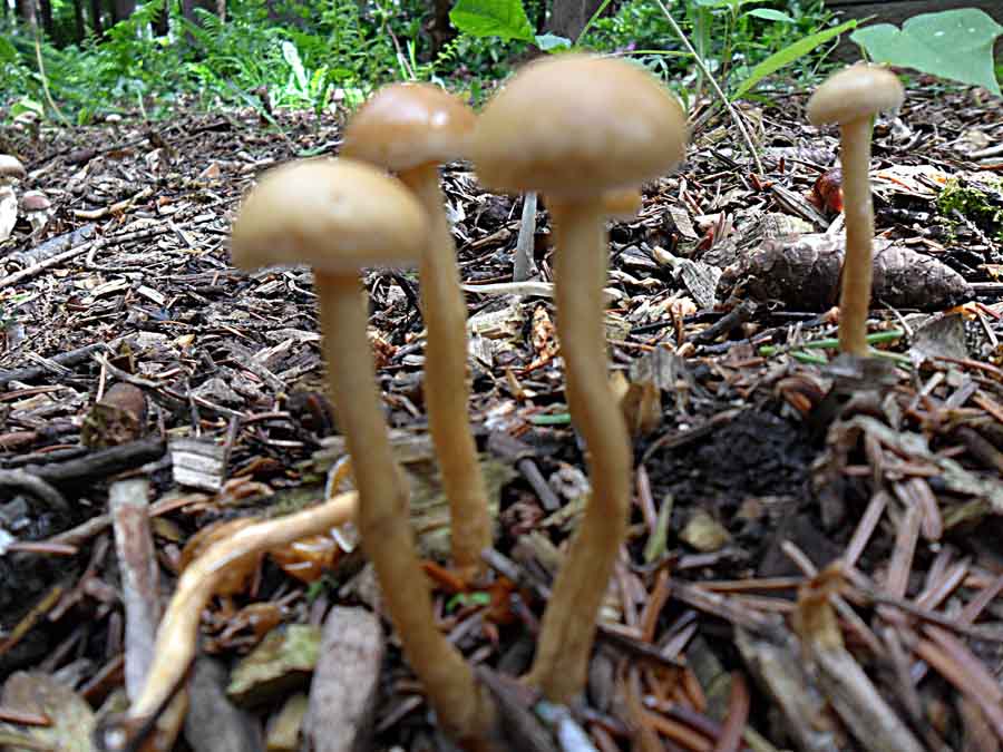 Nr.3 und 4: Agrocybe pediades paßt auch ganz gut aber ich habe da meine Zweifel weil ich nirgends von einem Vorkommen auf Rindemulch gelesen habe. Eine schmierige Huthaut hat nach 36 Stunden Dauerregen ja fast jeder Pilz.