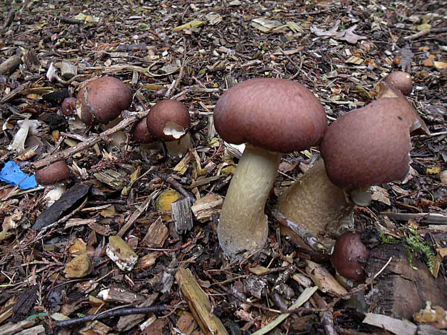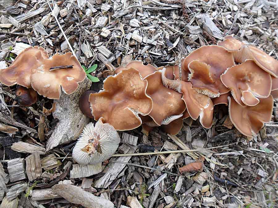 Bei deinem Unbekannten 1. melde ich vorsichtig Zweifel am Waldfreundrübling an... Hier könnte ich mir angesichts des Standortes (Holzreste/ Mulch), des büscheligen Wuchses und der dunklen Färbung der jungen Exemplare den üppigen Rübling ( Gymnopus luxurians) vorstellen. Waren die Pilze denn vergleichsweise groß und hast du mal an ihnen gerochen?