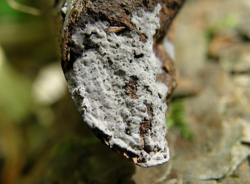 Die Borstentramete, die du zeigst, Stefan, ist aber die Helle (Coriolopsis trogii). Die dunkle hatten wir auch, aber das war die mit dem dunkelbraunen Kontext. ;)