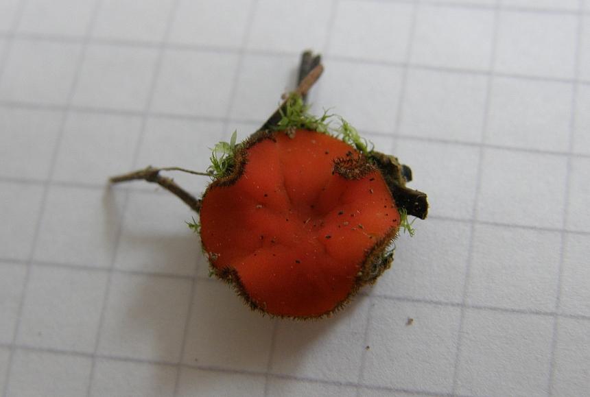 Scutellinia scutellata muss es richtig heißen und für alle Nichtlateiner; damit ist der "Gewöhnliche Schildborstling" gemeint.