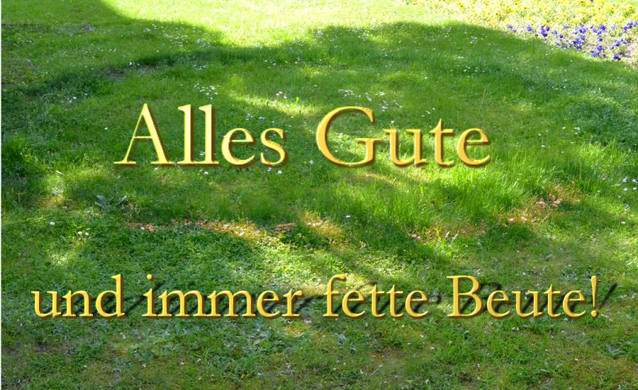 Danken will ich Dir für all die schönen Stunden (tags und nachts) in Deiner gastfreundlichen Obhut und Deine Geduld mit nachtaktiven Pilzlern, die ja eigentlich nur Deinen Garten aufräumen wollten. ![]()