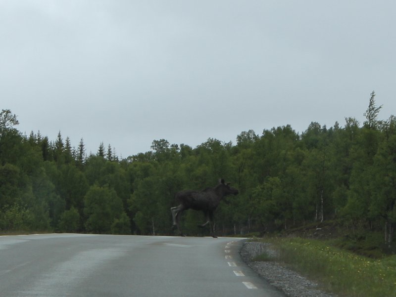 Ist das ein Elch da auf der Straße? Eine Elchkuh?