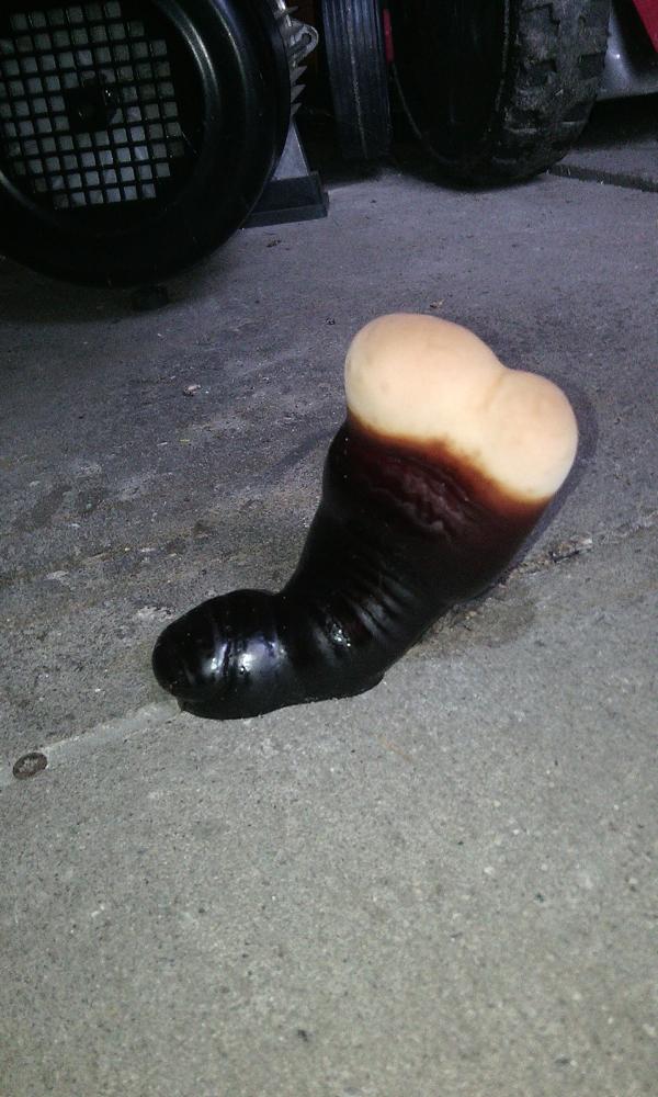 der eigenartige Stiefel auf Deiner Betonplatte könnte durchaus ein Glänzender Lackporling (Ganoderma lucidum) sein. Dann müssten aber unter dem Beton Holzreste sein, z.B. Eichenbalken oder Ähnliches.