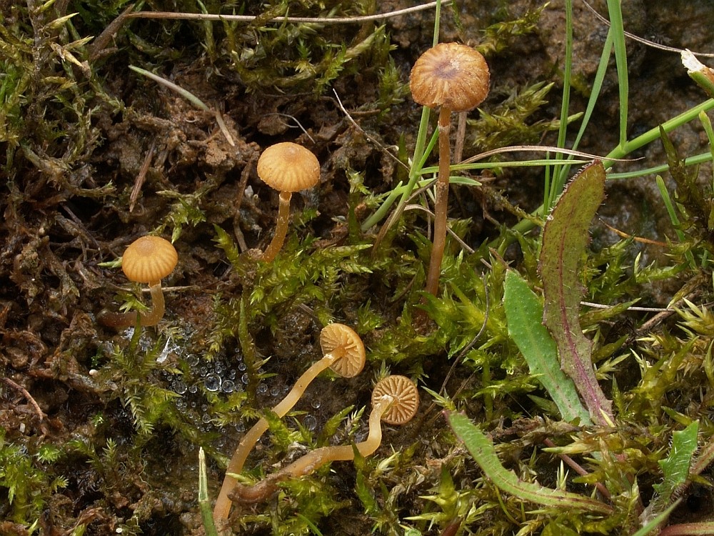 In feuchtem Moos fand sich noch ein kleiner, beringter Häubling, der mich mit 5 mm Hutdurchmesser an meine Grenze für Freilandfotografie brachte. Galerina jaapii.