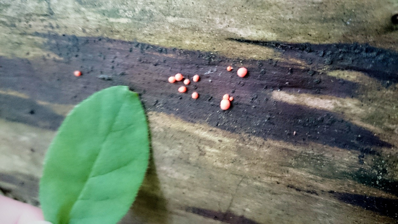 Das erste Bild, ja was ist das wohl? Witzig da ich an sich nur die Schnecke fotografieren wollte und erst im Nachgang bemerkte dass dieser vermeintliche Pilz auf dem Ast war. Sieht aus wie eine winzige Art Becherlinge in orange oder gehört das auch zu einer Art Schleimpilz(ist das Orangene überhaupt ein Pilz?)?