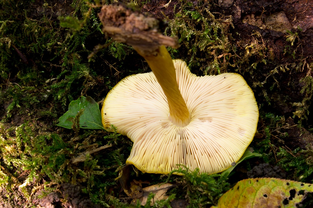 Verwechslung: Mit leuchtend gelbem Stiel und gelbbraunen - rußbraunem Hut --> Gelbstieliger Dachpilz (Pluteus romelii)