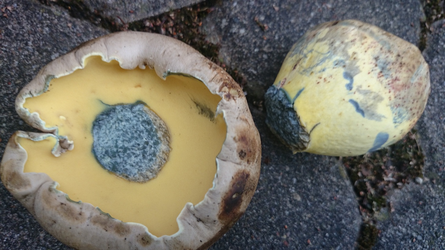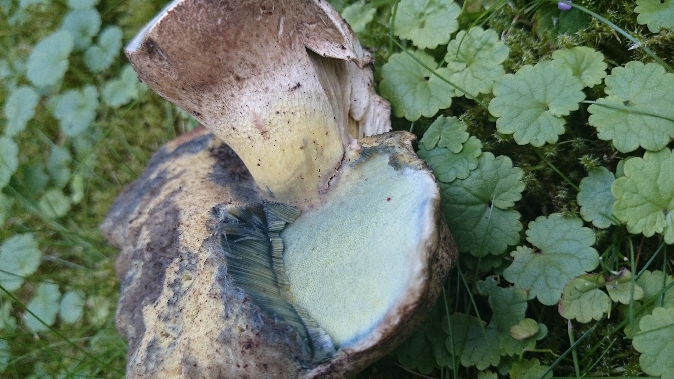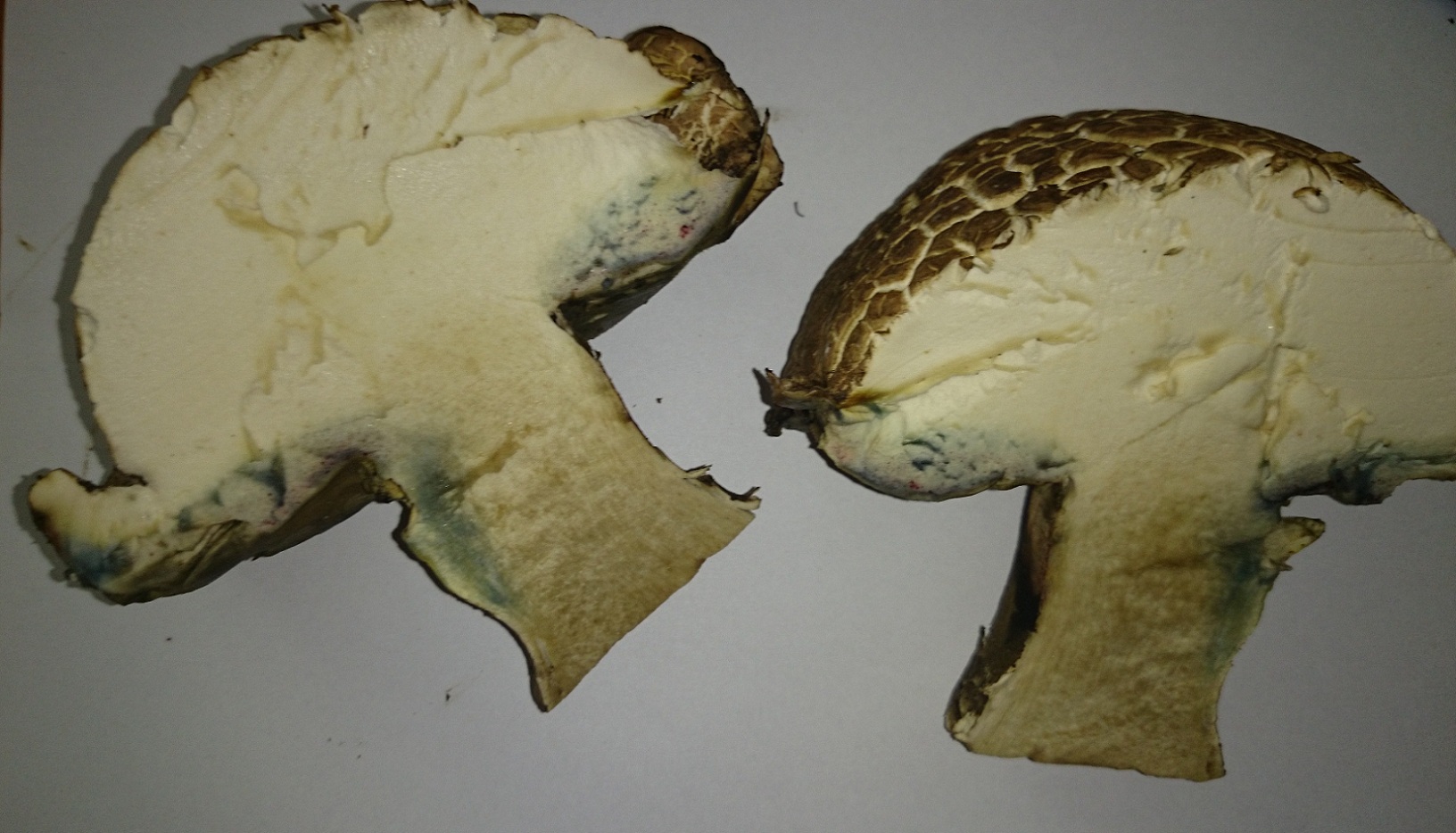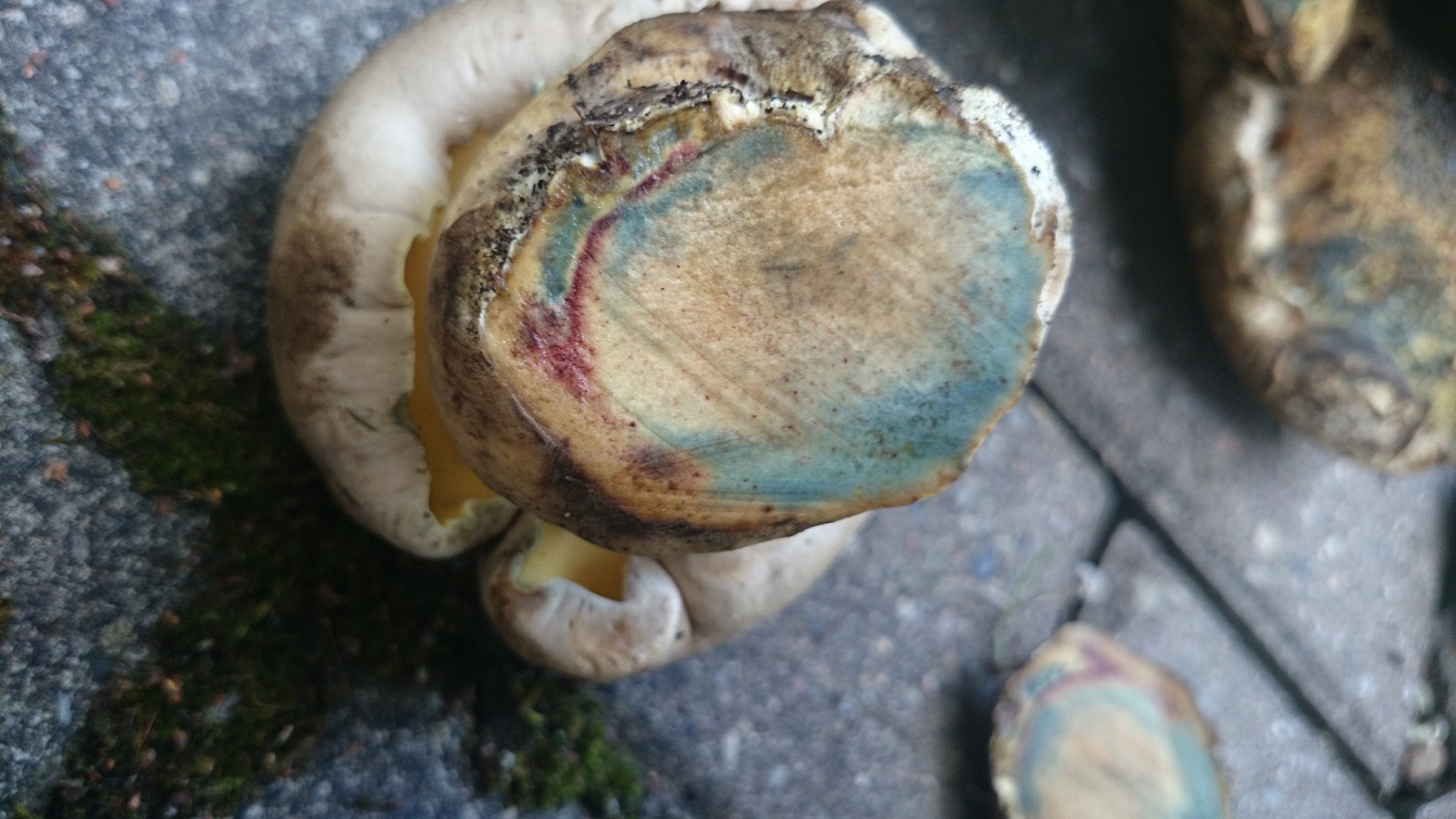 Im Querschnitt blauten die Pilze (insbesondere die kleineren blauten stärker).