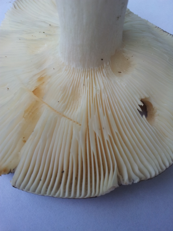 Lamellen, weiß, am Stiel angewachsen, herablaufend