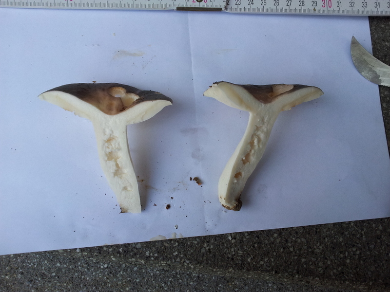Fleisch weiß, mit Eisensulfat keine bis sehr leicht gelbe Verfärbung