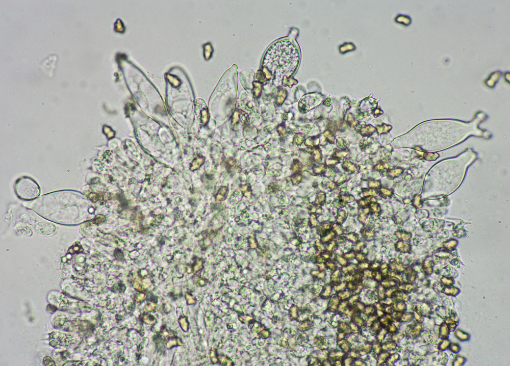 I. curvipes kann gut hinkommen. Der breite Buckel bei dem liegenden Exemplar in der Mitte ist typisch. Ich hatte bei meinen Funden unter den Cheilozystiden allerdings einen größeren Anteil sie so aussahen wie die rechte Pleurozystide.