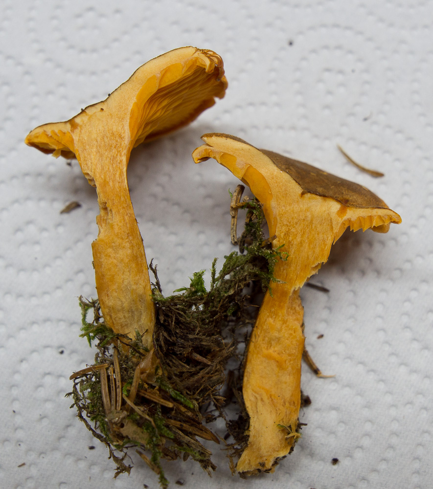 - Nach einem Falschen Pfifferling sieht mir das auch nicht aus. Scheint mir dafür irgendwie etwas zu "fest" zu sein und farblich irritiert mich der Hut (v.a. im ersten Bild etwas). Ich kenne das von echten Pfifferlingen dass die auch manchmal etwas bräunlicher verfärbt sind wenn sie direkt unter Fichten quasi zugedeckt wachsen. Aber das sah dann immer anders bzw. durchgehender aus... hier scheint ja genau ziemlich kreisförmig nur auf die Hutoberseite zuzutreffen. Aber vielleicht täuscht das Foto auch.