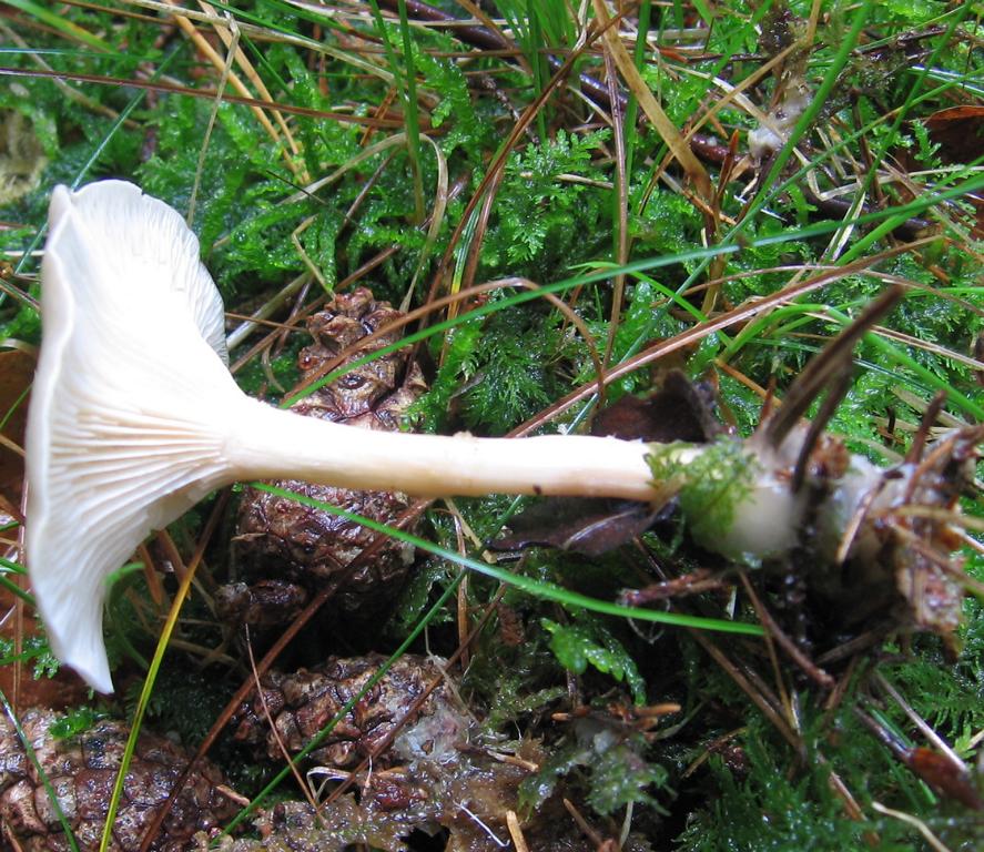 Stiel: ca. 5 x 0,5cm, Farbe wie die Lamellen, hohl, längsfaserig, Basis keulig geschwollen, filzig, mit allem Möglichem verbacken.