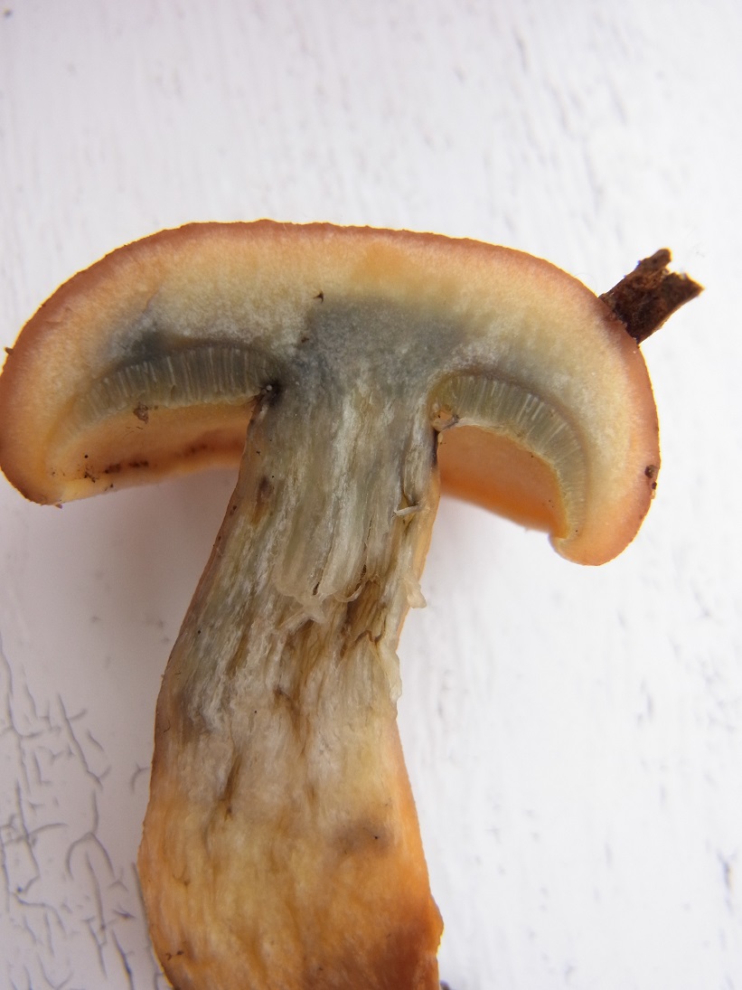 Beim Aprikosenfarbenen Röhrling würde ich schon sagen, daß das so recht sicher ist. Die Farben (Hut und Stiel), die Farben des Fleisches und das Verfärbungsmuster passen sehr gut zu der Art.