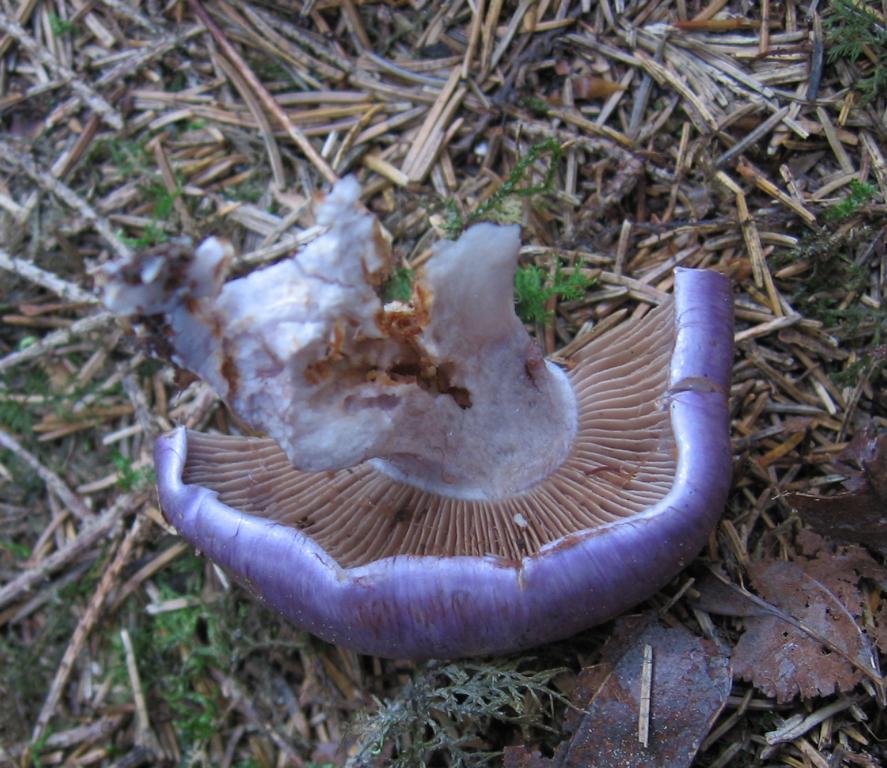 Stiel: 5cm, gesamt ca. 6,5x 2 Basis 3cm, lila etwas heller als Hut, im Durchschnitt Hutfleisch weiß, Stielfleisch gräulich.