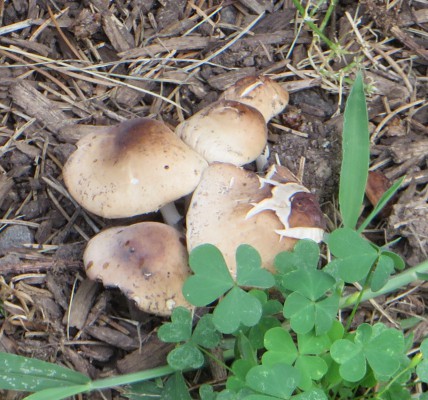 die folgenden büschelig wachsenden Pilze fand ich in einem Park unter einer Tanne (in der Nähe verschiedener Laub- und Nadelbäume), teils auf Rindenmulch, *in den USA*.