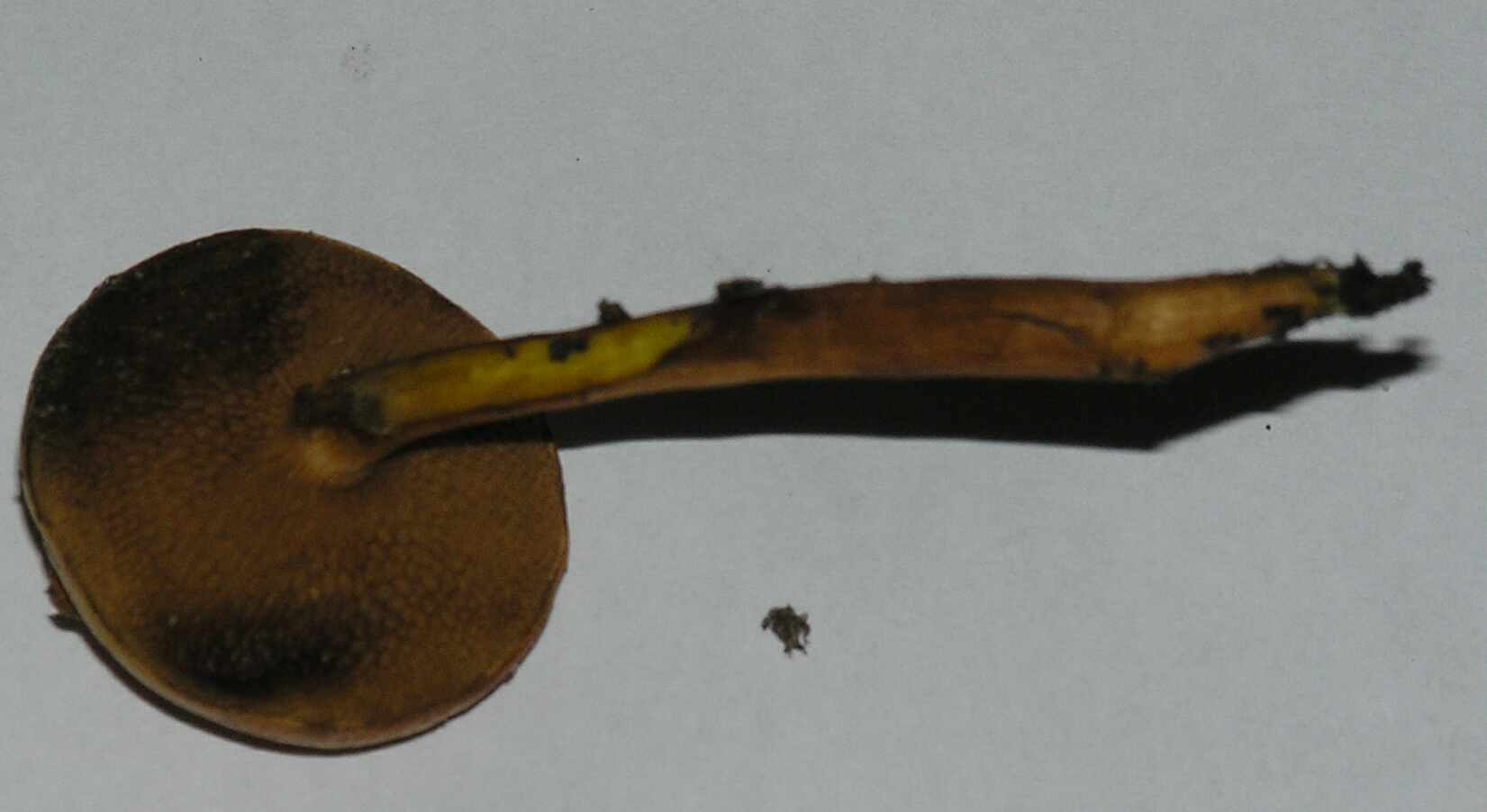 Pilz Nr. 2 (Bilder 3-5): Halte ich für den Pfefferröhrling (Chalciporus piperatus). Der Geschmack war scharf, das Stielfleisch gelb (siehe Bild 5). Begleitbaum war eine Buche.