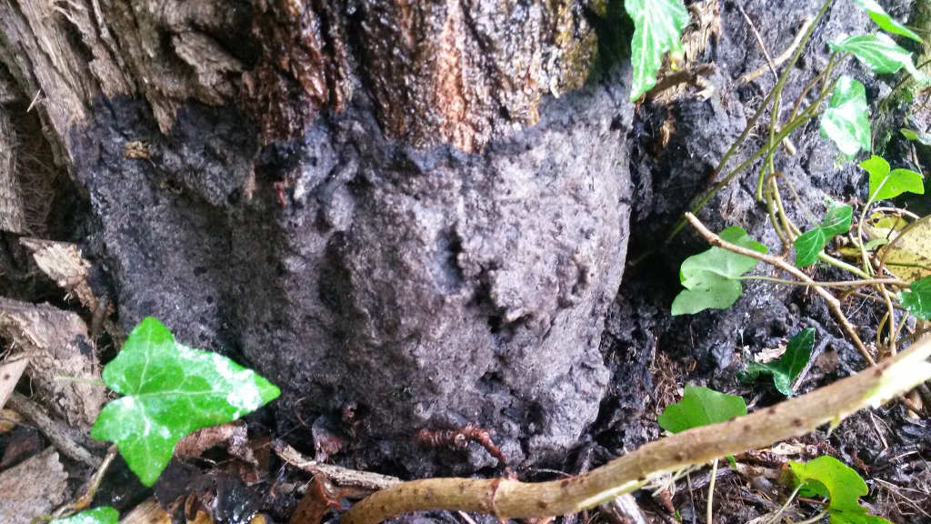 Es folgen erneut 2 Bilder des dunkelbraunen Belags den ich WIEDER MAL am Stammfuss einer Pappel fand.